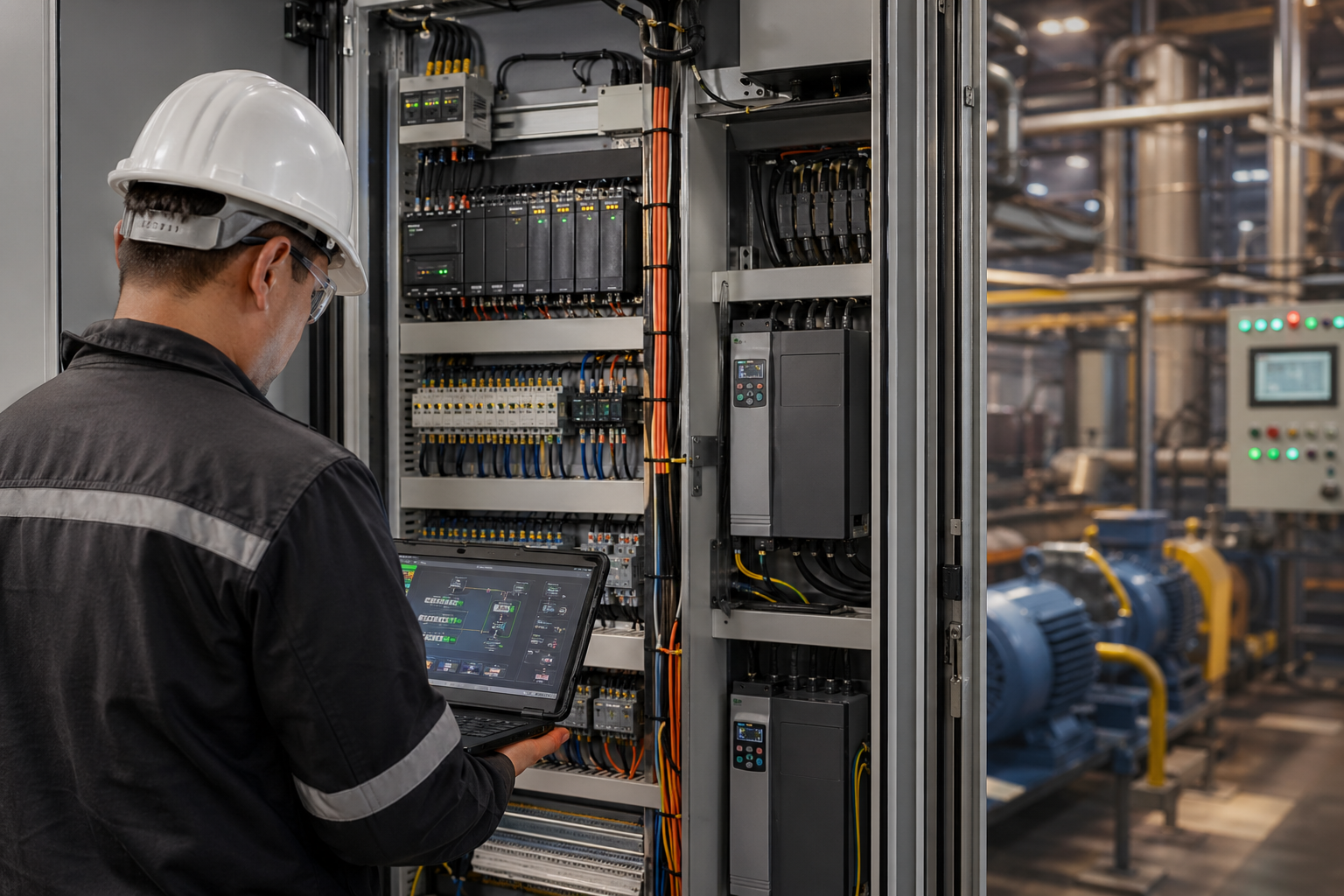 Electrical and instrumentation panels, MCCs, distribution boards, and supporting power infrastructure.